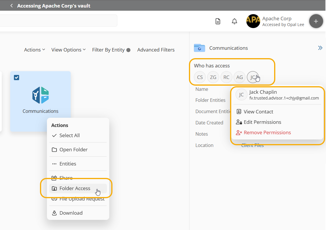 - Folder Access Visibility: Quickly see who has access to any folder by right-clicking and selecting 'Folder Access' or by looking in the Side Panel display. Learn more here.